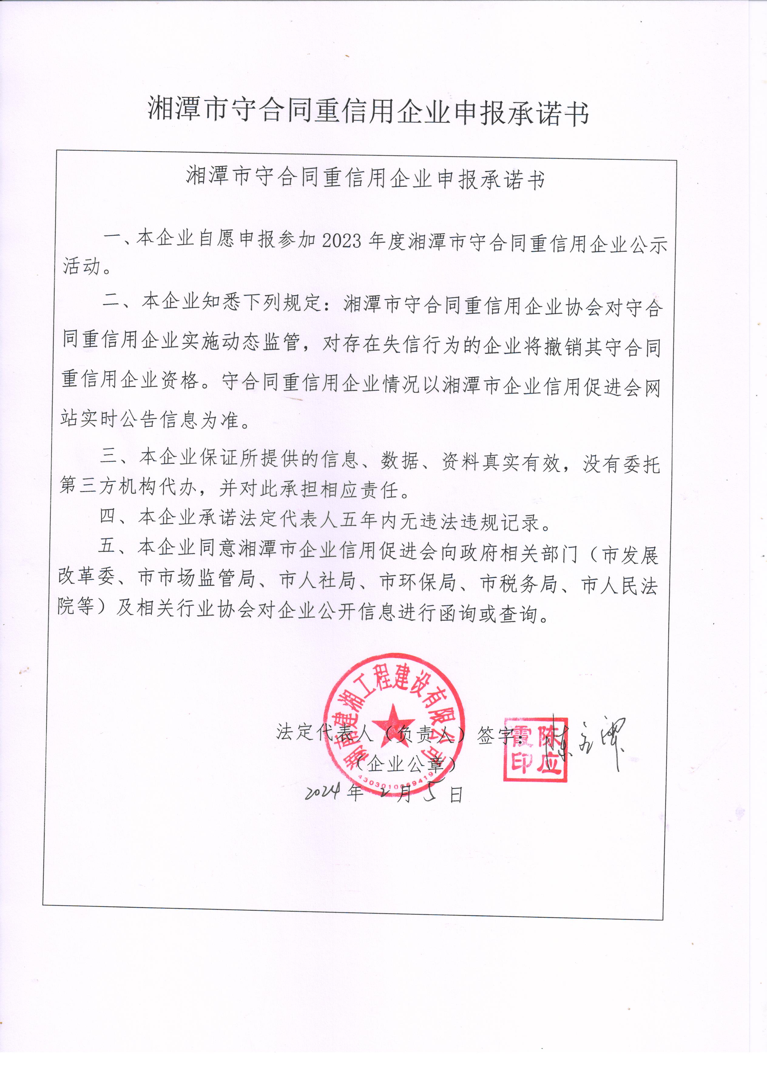 本企業(yè)根據(jù)《湘潭市守合同重信用企業(yè)申報規(guī)定》等編制 2023 年度企業(yè)信用報告書,并保證本報告書內(nèi)容真實、準確、完整。