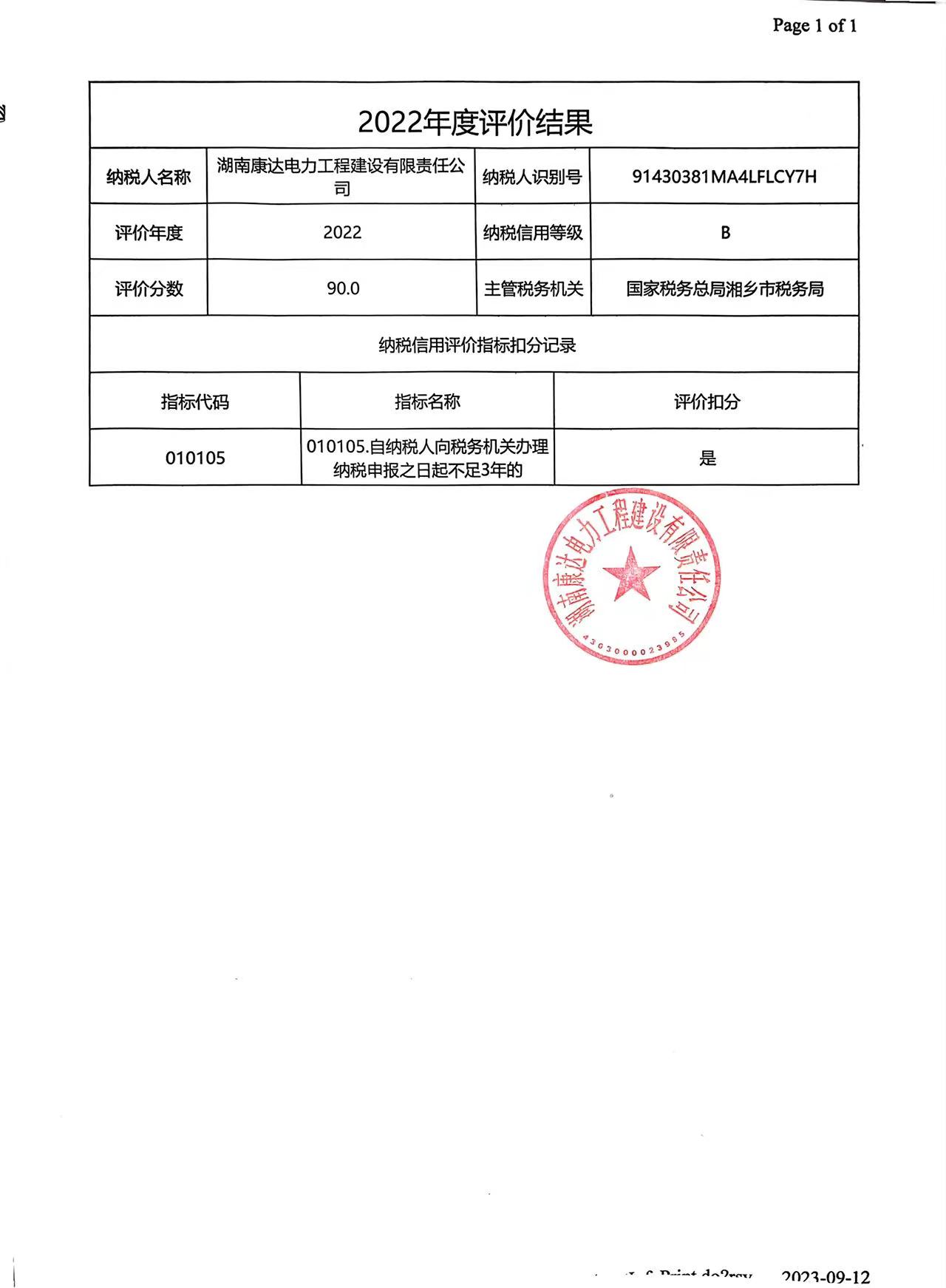 企業(yè)納稅信用等級報(bào)告: