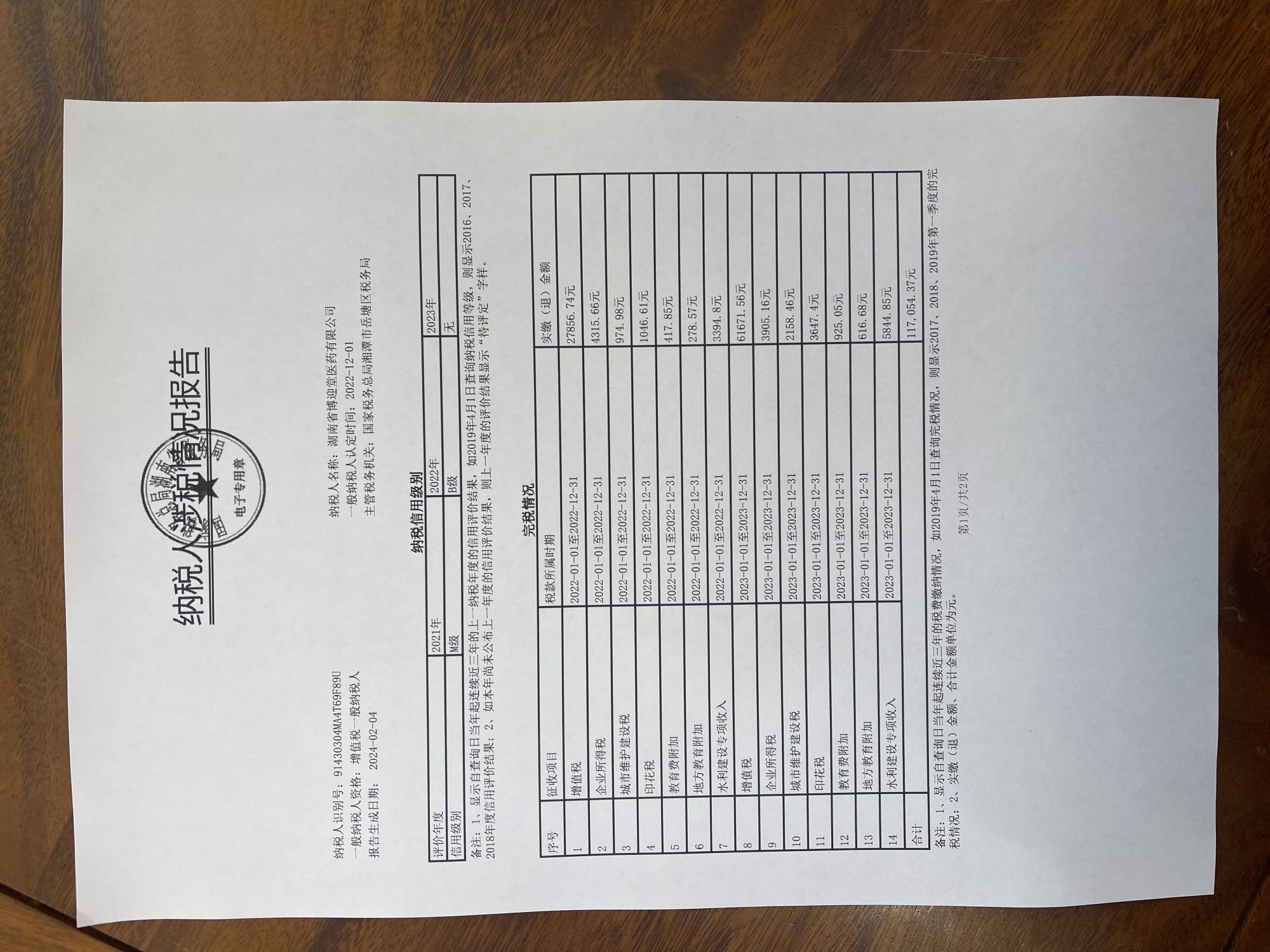企業(yè)納稅信用等級報(bào)告: