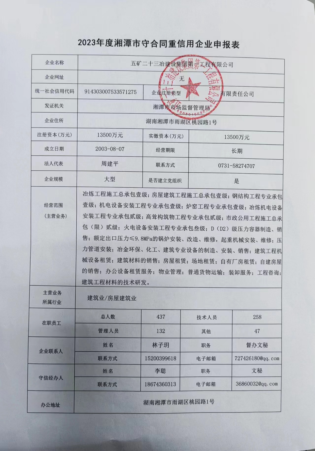 本企業(yè)根據(jù)《湘潭市守合同重信用企業(yè)申報(bào)規(guī)定》等編制 2023 年度企業(yè)信用報(bào)告書,并保證本報(bào)告書內(nèi)容真實(shí)、準(zhǔn)確、完整。