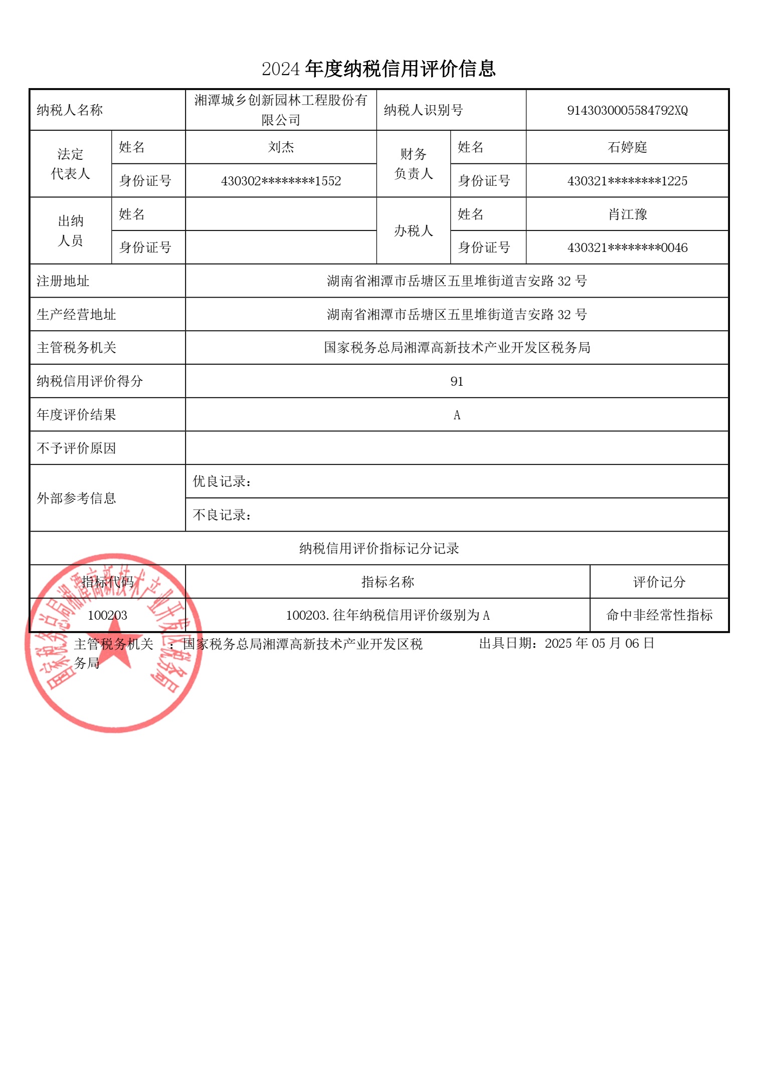 企業(yè)納稅信用等級報告:
