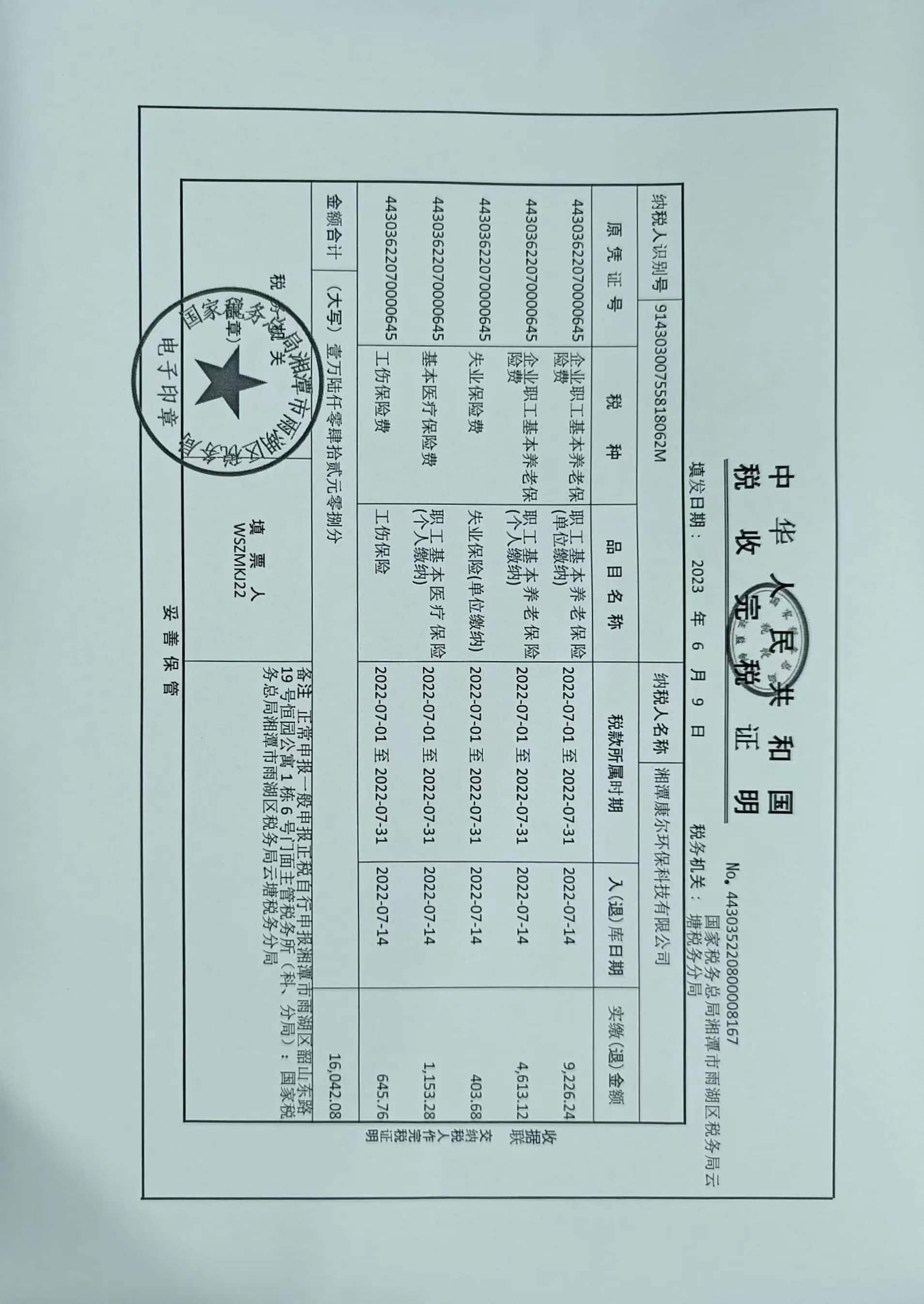社保繳納證明: