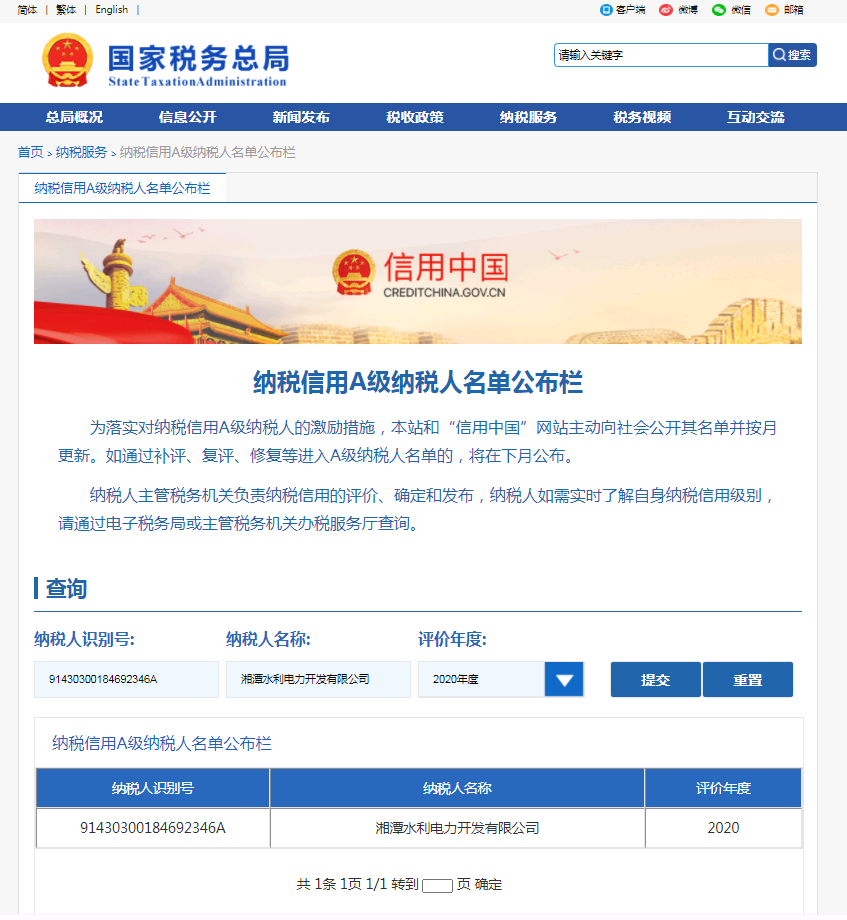 企業(yè)納稅信用等級報告: